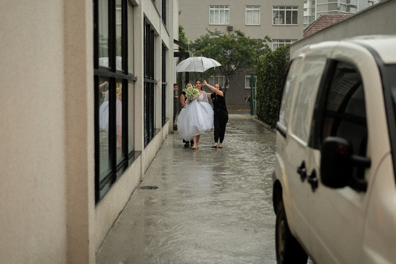 Alguns casamentos não são lembrados apenas pela beleza, mas pela atmosfera que os envolve. O casamento de Fernanda e Luciano nasceu assim: em um dia de chuva delicada em Joinville, onde cada gota parecia anunciar que aquele seria um dia diferente — e profundamente especial.