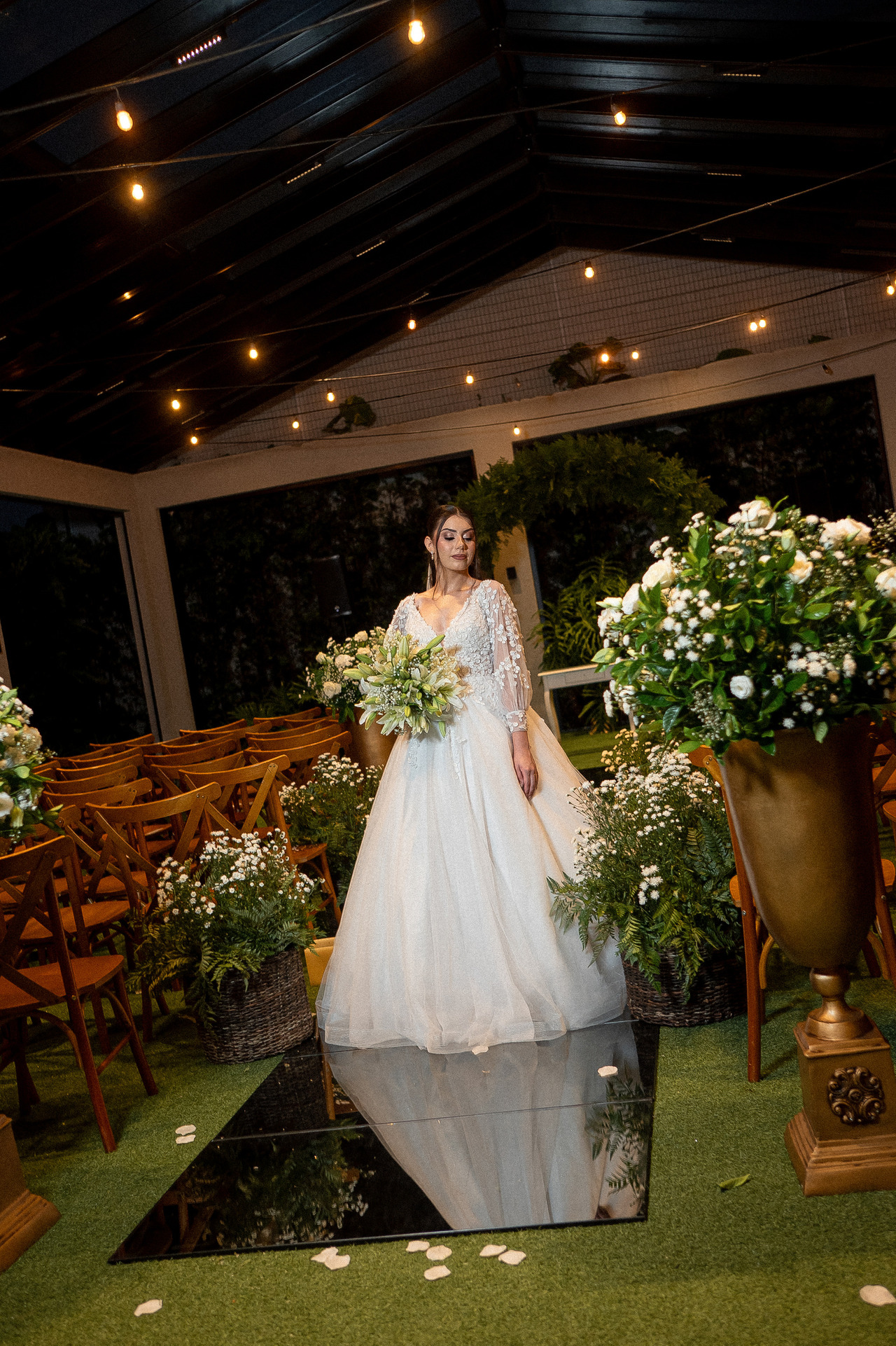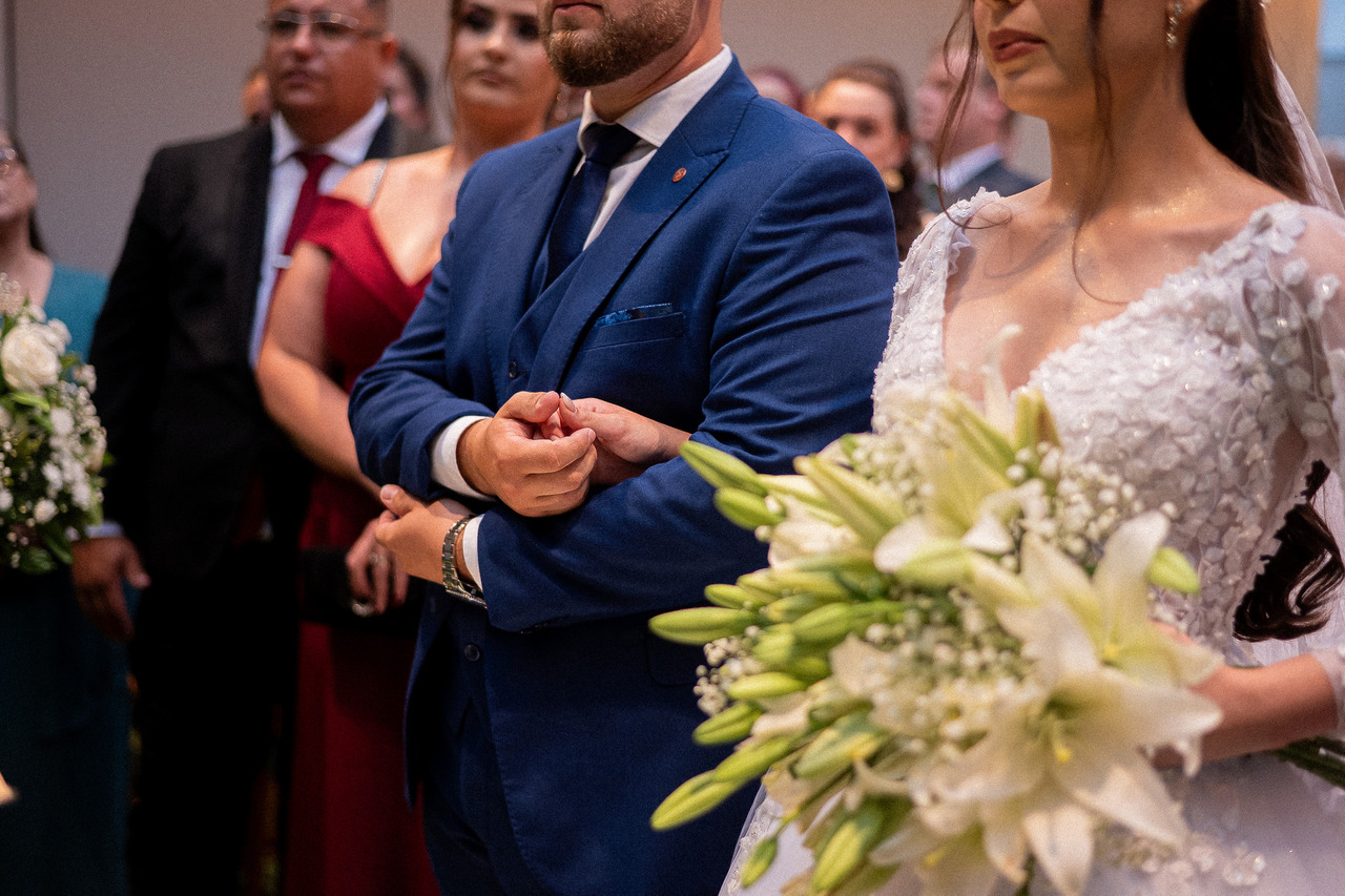 Houve algo raro naquele momento: silêncio, emoção e verdade. Fernanda caminhou com serenidade, Luciano aguardava com os olhos cheios de expectativa, e cada detalhe parecia acontecer no tempo certo. A condução cuidadosa do dia, assinada pelo cerimonial da JEV Eventos, permitiu que tudo fluísse com leveza, mesmo sob o som constante da chuva.