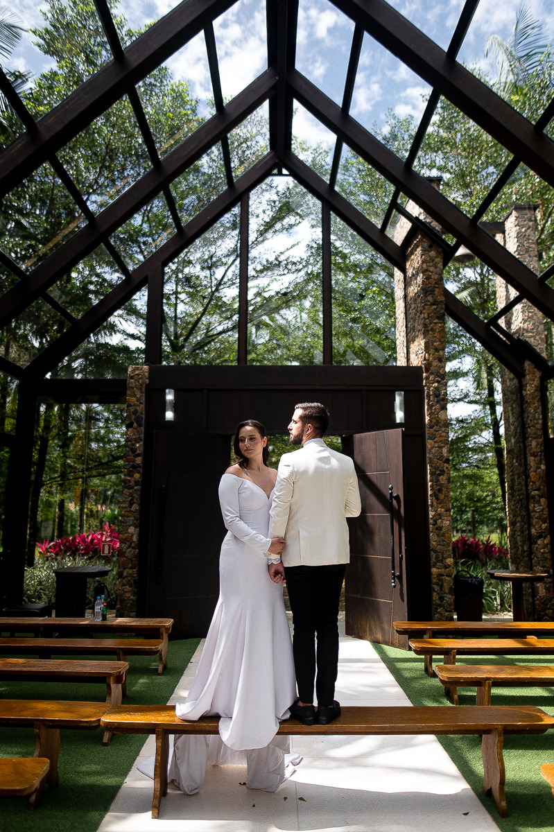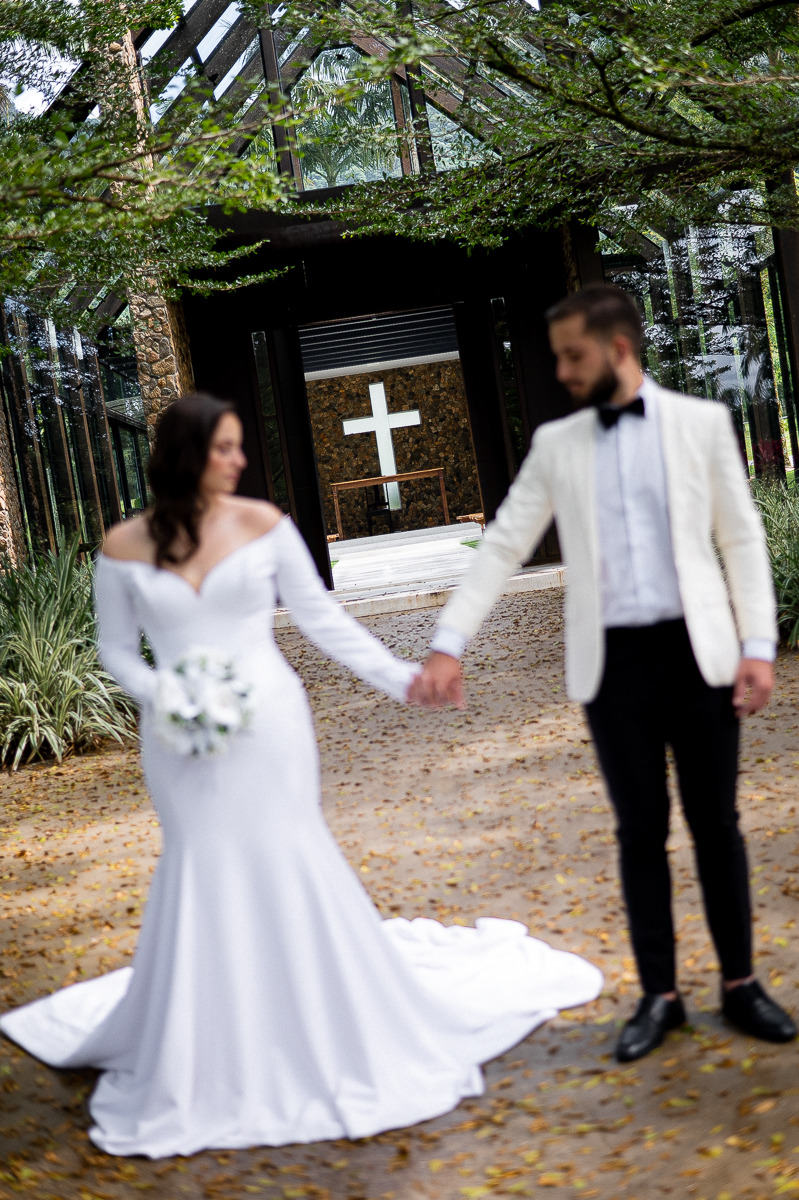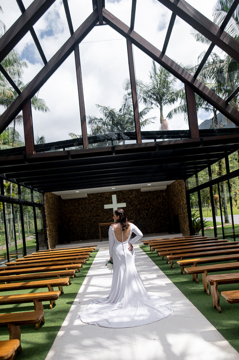 Entre os jardins, a capela de vidro e os espaços abertos do local, cada momento trouxe novas possibilidades de imagens. A luz natural do lugar, somada ao clima tranquilo do campo, cria o cenário perfeito para fotografias cheias de atmosfera e emoção.